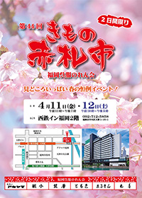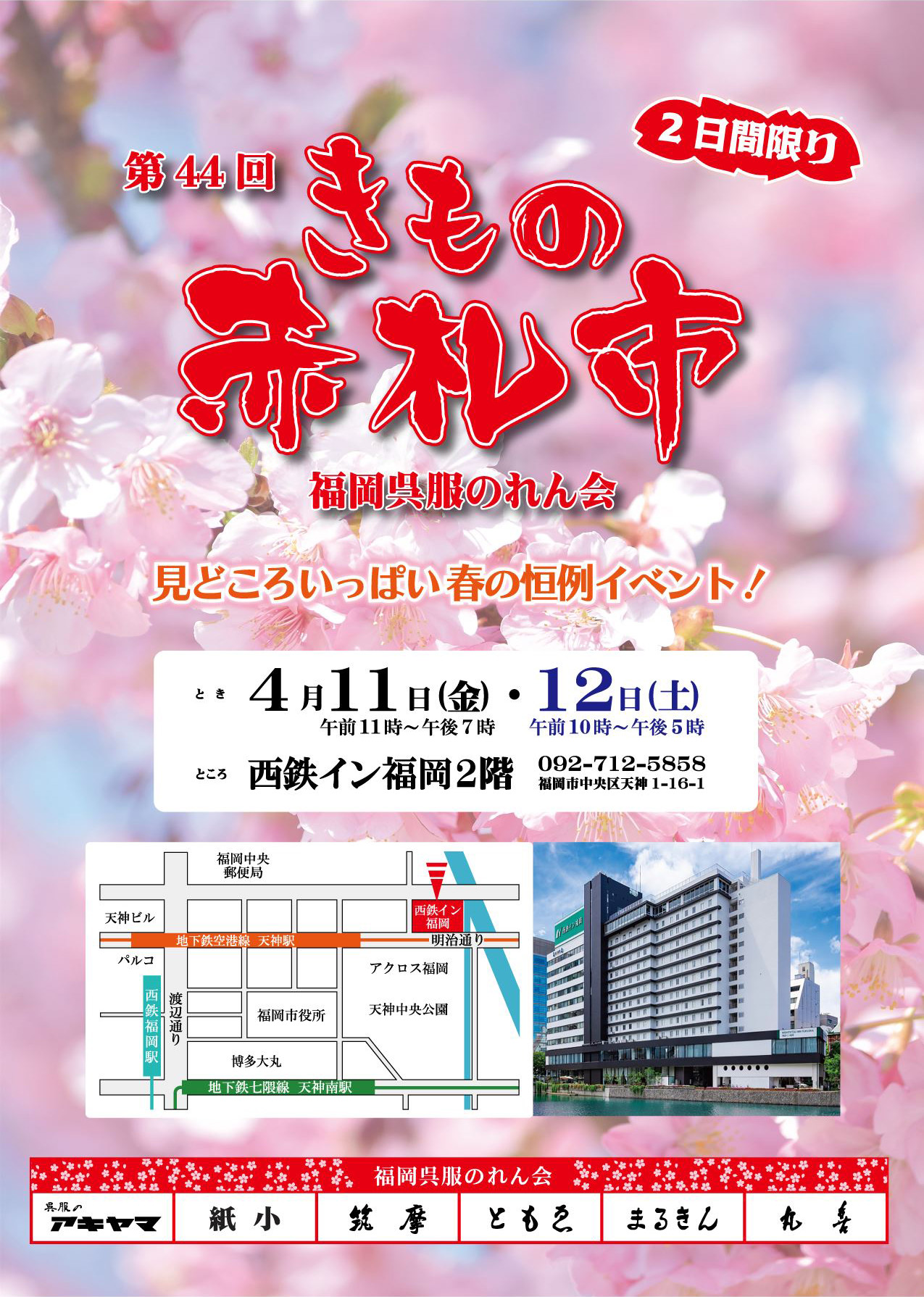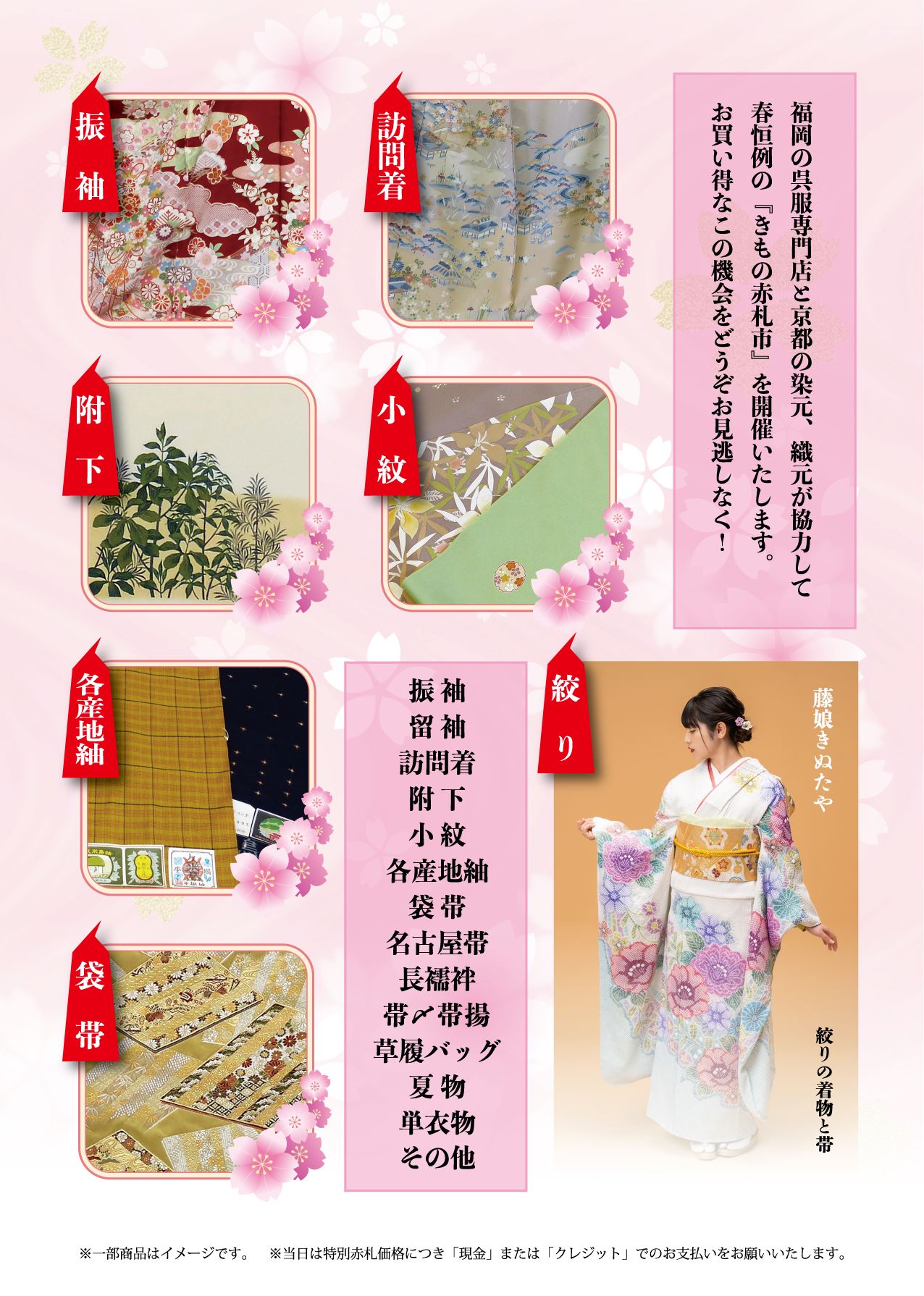 例年4月に福岡呉服のれん会有志にて開催しております「きもの赤札市」ですが、現在の社会状況からやむを得ず延期する事といたしました。